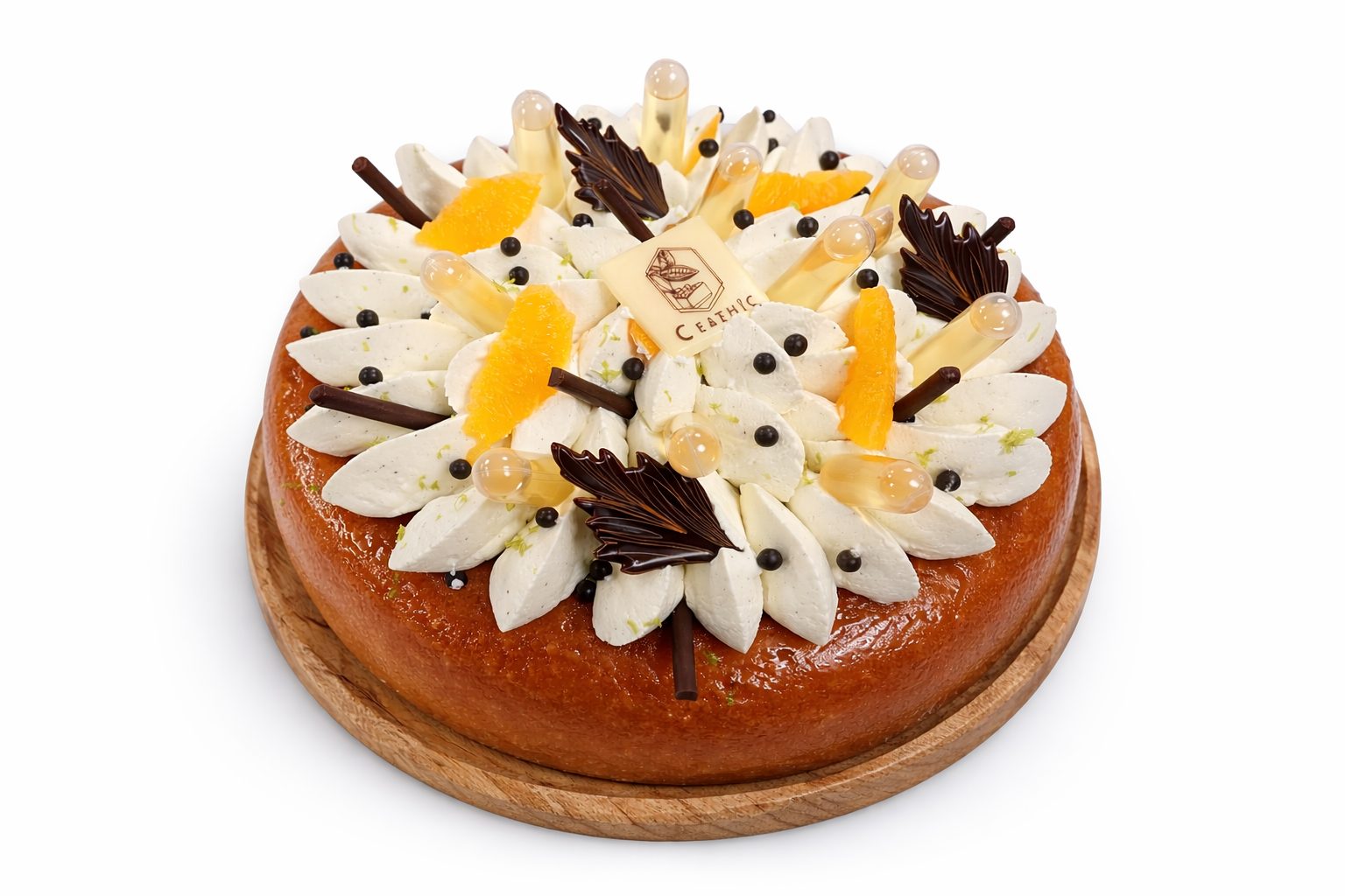 Ce baba moelleux est délicatement imbibé d’un sirop parfumé aux agrumes, qui apporte fraîcheur et équilibre. Il est ensuite garni d’une crème pâtissière légère à la vanille, puis généreusement recouvert d’une chantilly mascarpone à la vanille, onctueuse et aérienne.